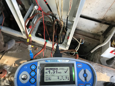 На фото полученное значение 0,14 Мом, что ниже допустимого 0,5 МОм и свидетельствует о повреждении кабельной линии.