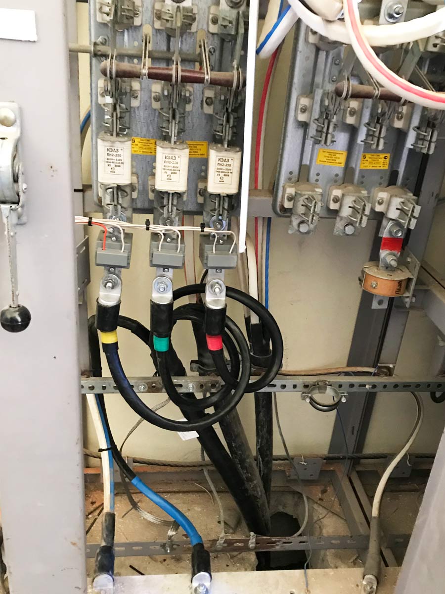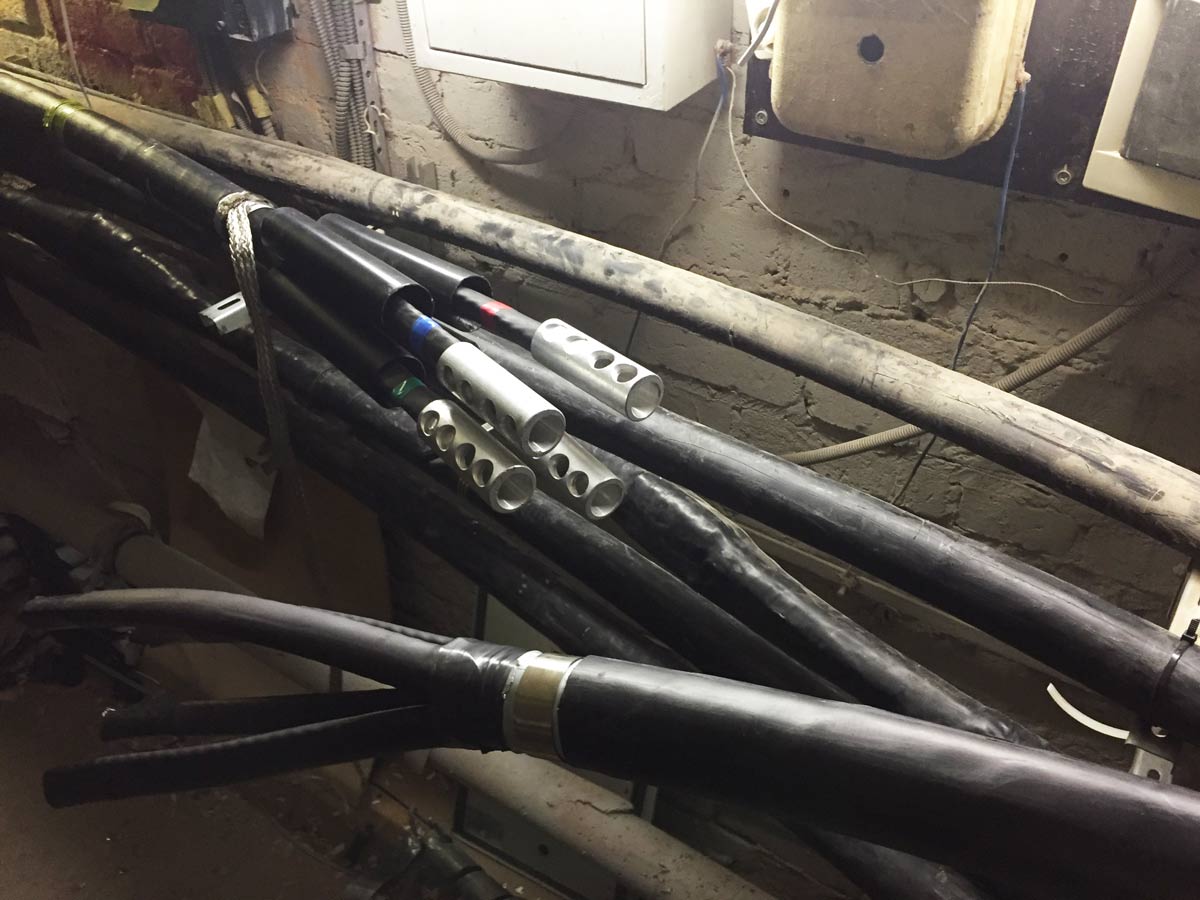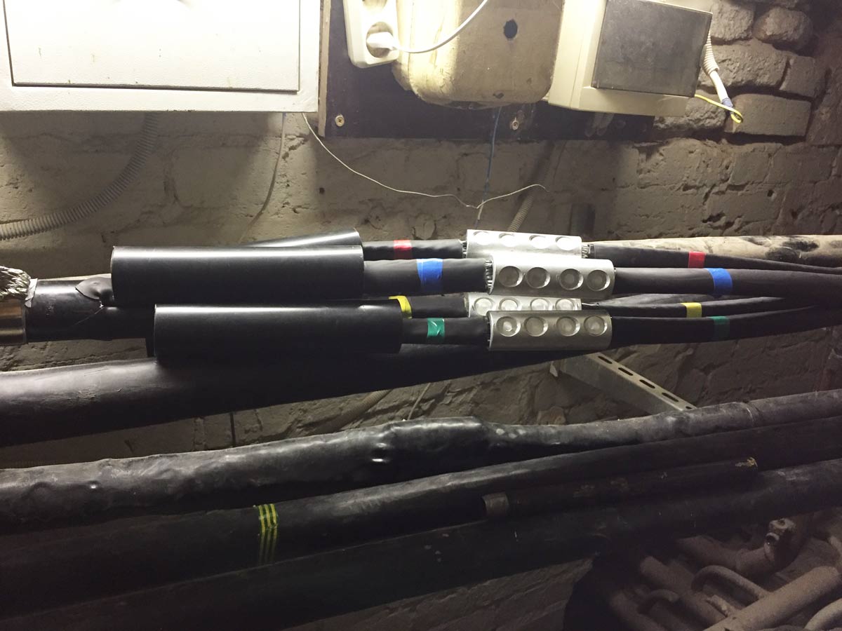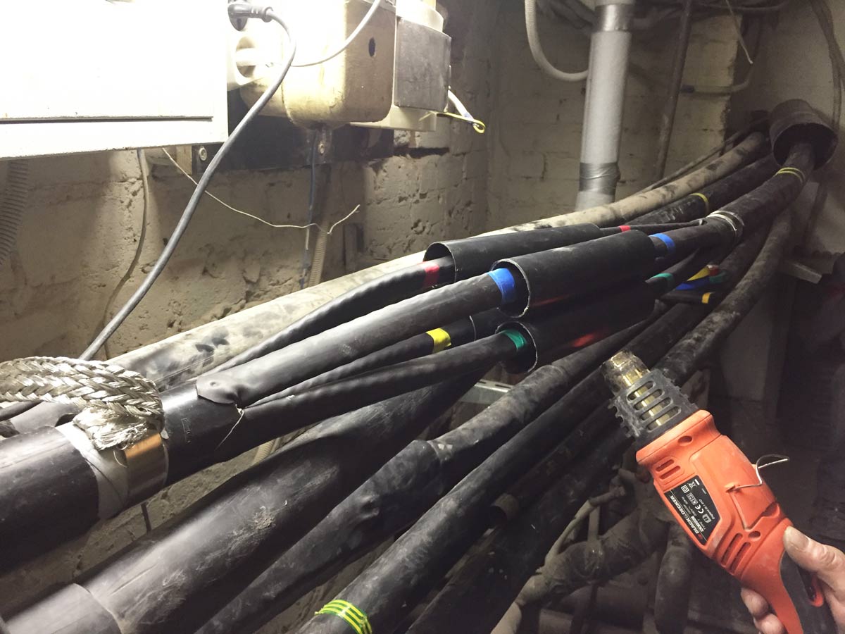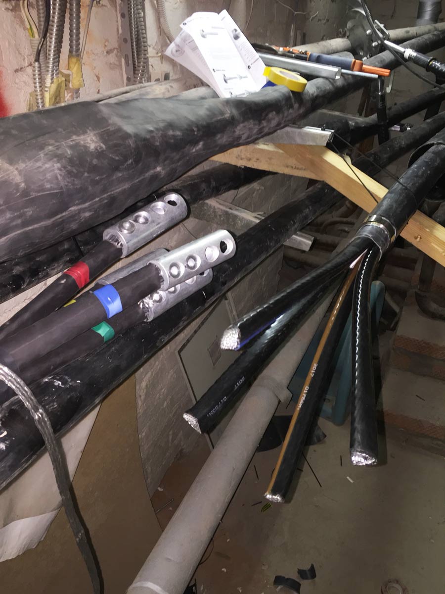 Установка соединительной муфты на кабели апвббшп 4х240, при переносе кабельных линий внутри здания.