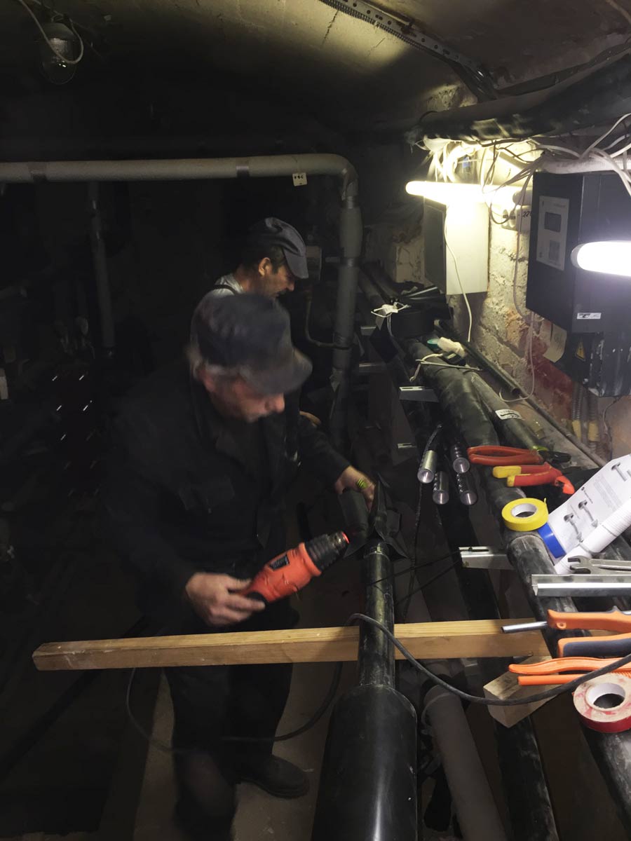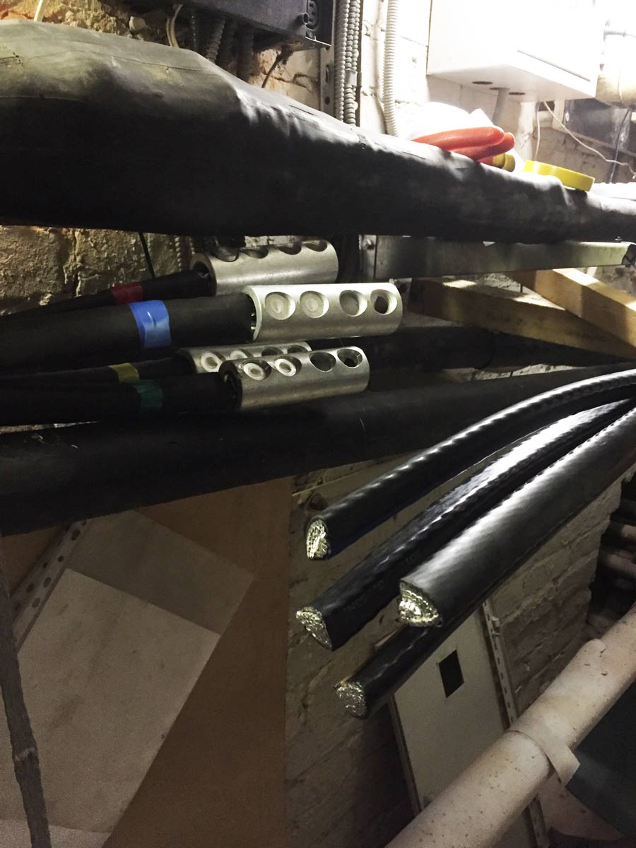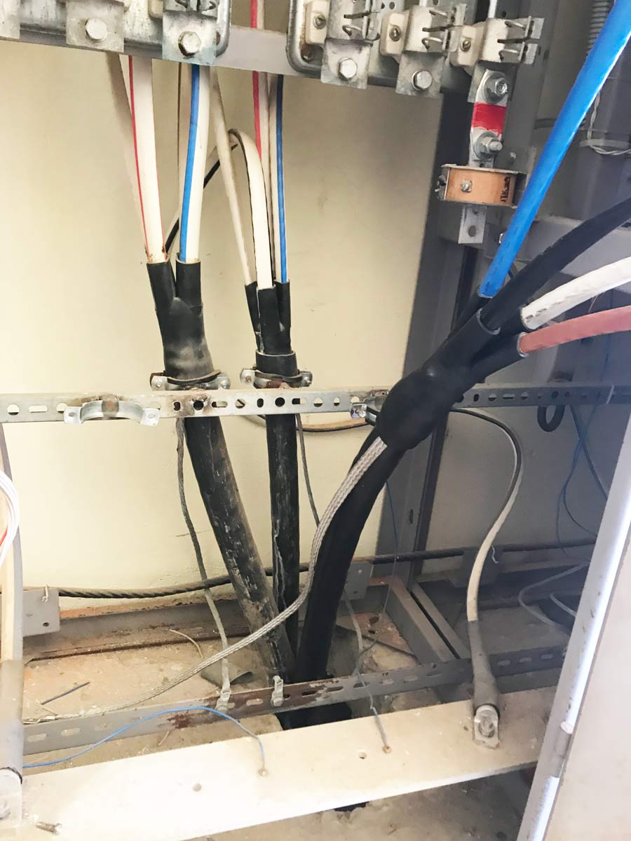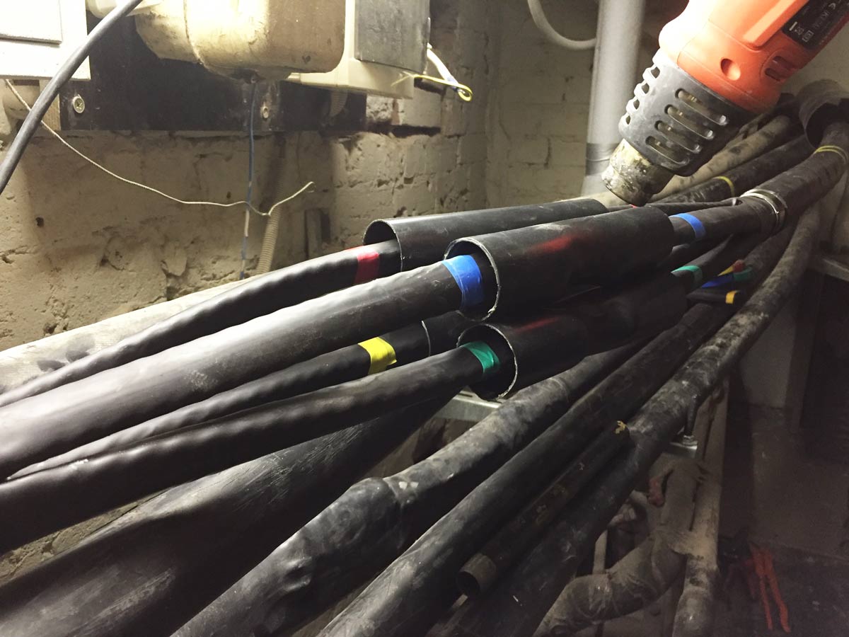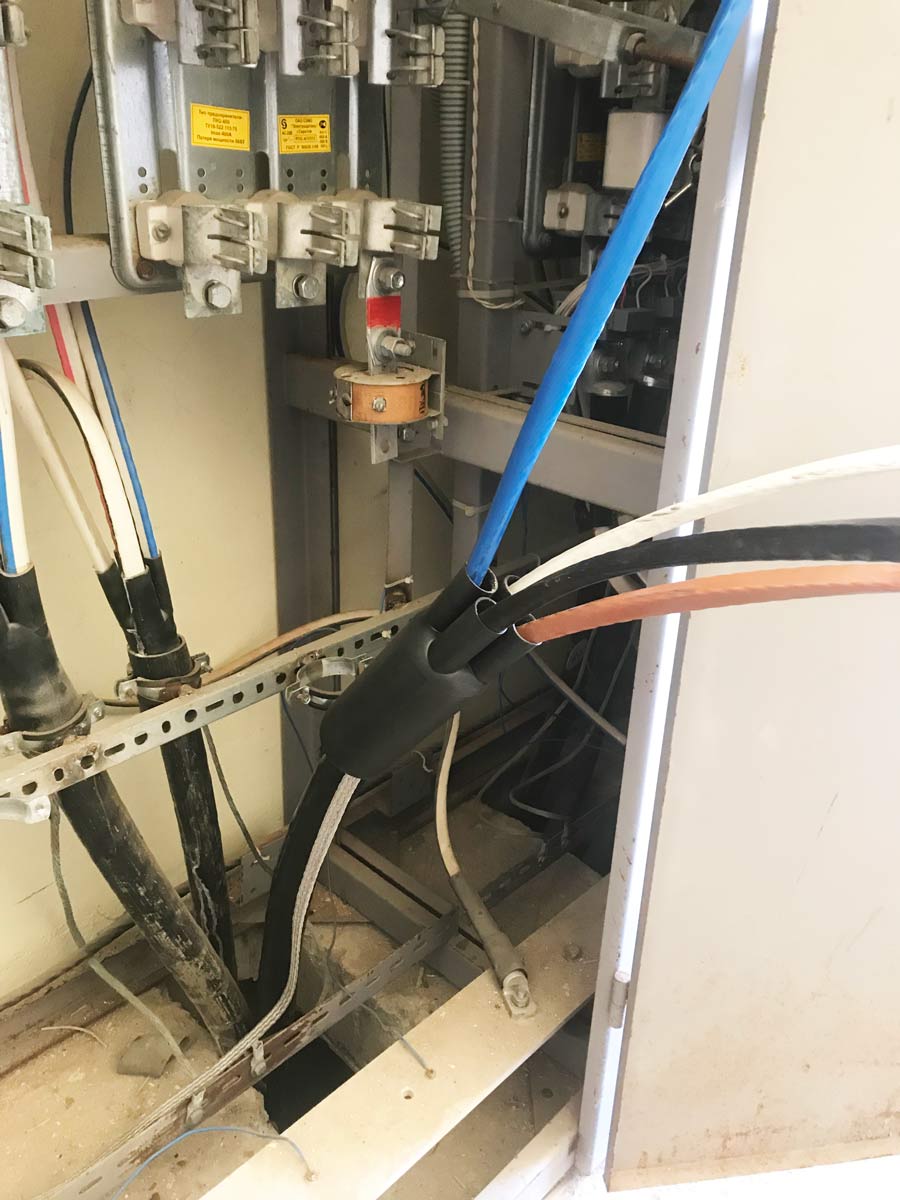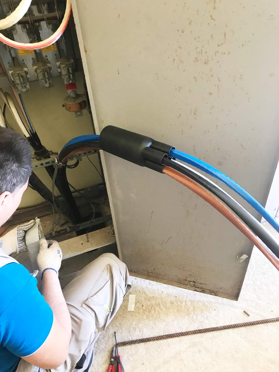 Установка соединительной муфты на кабели апвббшп 4х240, при переносе кабельных линий внутри здания.