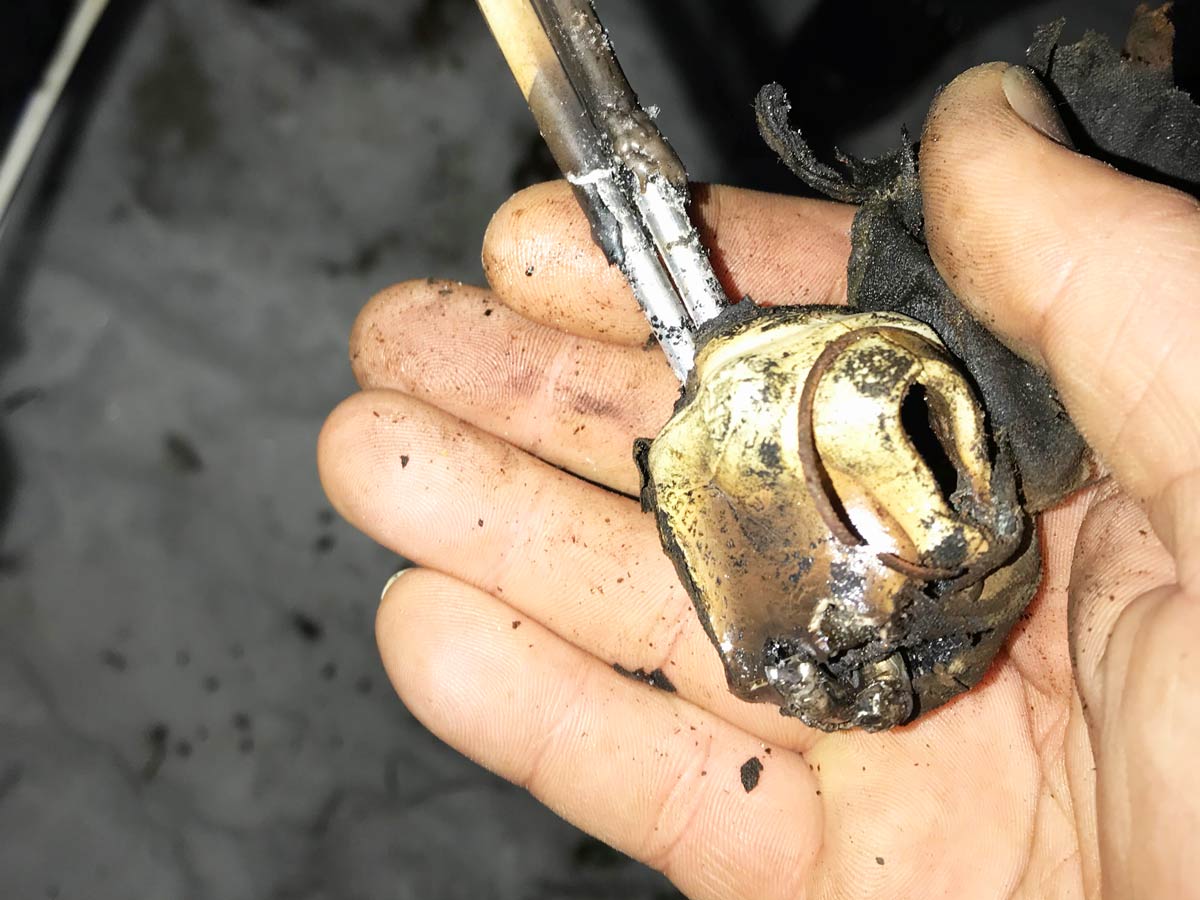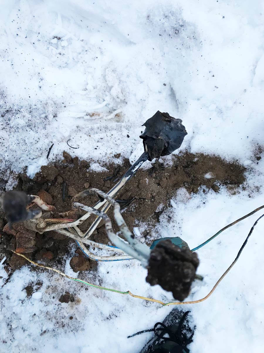 Сотрудники нашей компании выехали по заявке на поиск повреждения кабельных линий сети освещения. На объекте нам рассказали, что ранее все работало, но последнее время периодически стал выбивать автоматический выключатель питающий линию освещения, а теперь и вовсе не включается. Для начала мы произвели замер сопротивления изоляции фазных жил относительно брони кабеля, оказалось 0,00 Мом, что означает пробой фазной жилы на броню, казалось бы все просто. Но рефлектометр показывал неоднозначную картину. Подключили генератор ГП-100К и пошли слушать, в итоге внутри 3-го столба показывало, что повреждение здесь, открутили столб, сняли, да, действительно, в месте соединения жил кабелей была оплавлена изоляция и она касалась корпуса столба, к которому была подключена броня кабеля. На самом деле это было не единственное место. Всего столбов освещения на линии около 40 штук, в 6-ти столбах была такая же ситуация. Причина этого, плохое контактное соединение, которое вызвало нагрев и оплавление изоляции жил кабелей, а также корпуса сжима. При монтаже в кабельные сжимы (орехи) было подключено сразу 3 жилы кабелей в одно место, в столбах где происходило ответвление на линии освещения. В итоге мы помогли заказчику отремонтировать проблемные места и запустить линию освещения. Все работы были выполнены в течении 6-ти часов.